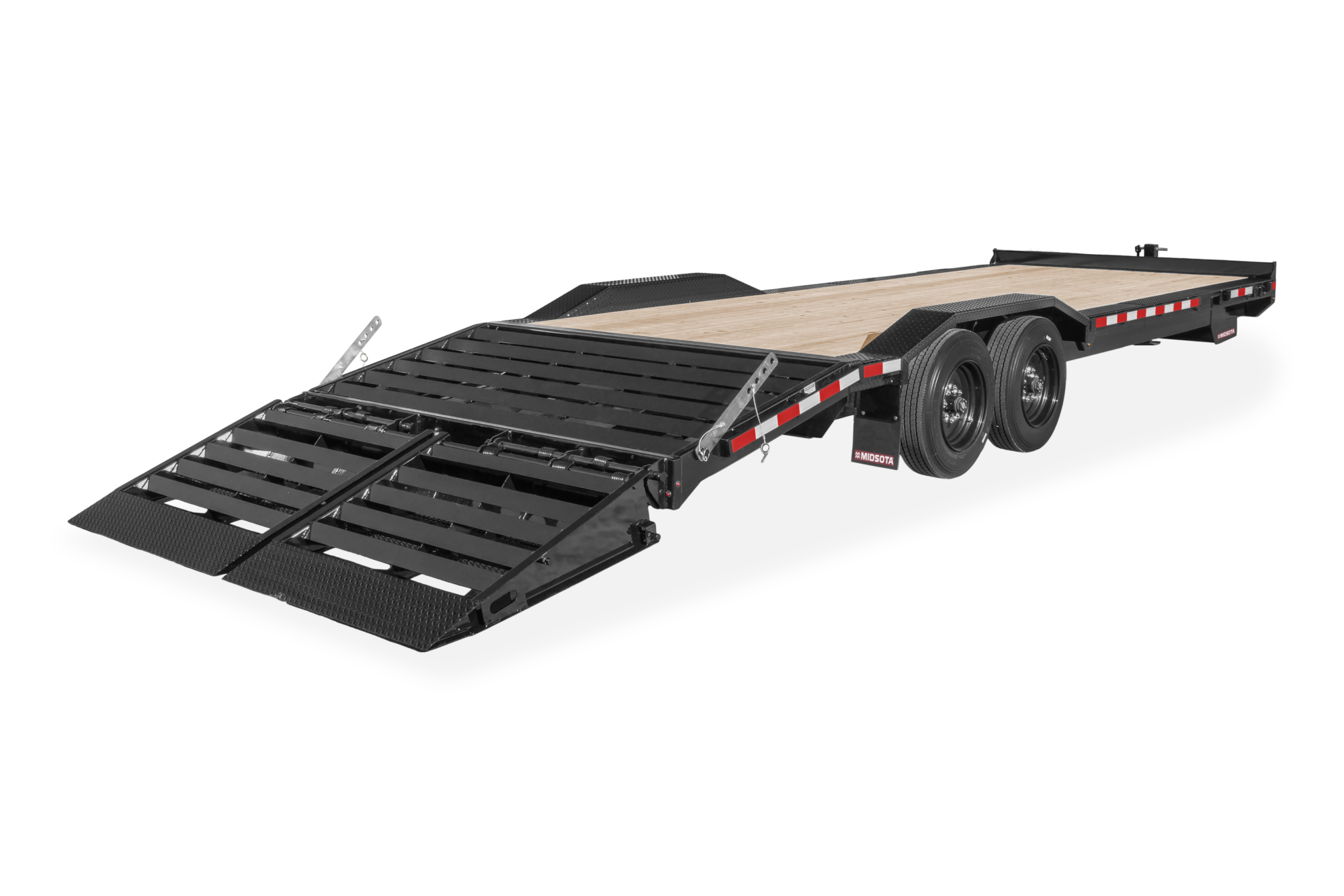 Built to tackle demanding jobs, the Midsota STWB Series flatbed trailer is ideal for transporting heavy-duty equipment, vehicles, and materials safely and efficiently. Combining rugged construction with user-friendly features like drive-over fenders and a 4-foot beavertail, the STWB Series ensures hassle-free loading and optimal performance for contractors, landscapers, and industrial users.